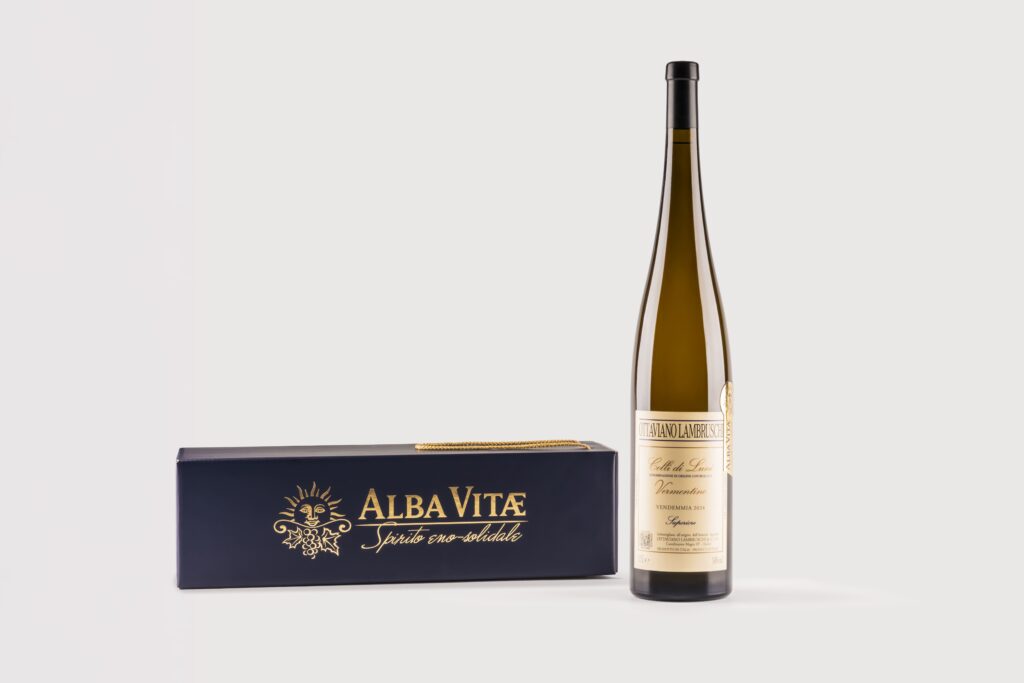 Il vino scelto per questa edizione di Alba Vitae è il **Colli di Luni Vermentino Superiore DOC 2024** di **Ottaviano Lambruschi**, azienda rappresentativa del territorio ligure. Vino elegante ed equilibrato, matura in acciaio per 8 mesi. Si distingue per i profumi intensi di pesca bianca, mela e agrumi. I sentori tipici della macchia mediterranea e delle erbe aromatiche ne completano il delizioso bouquet. L’assaggio è avvolgente e fresco; l’importante sapidità accompagna il sorso verso una chiusura piacevolmente ammandorlata. È perfetto in abbinamento con le linguine ai gamberi rossi di Santa Margherita. Il prezzo di vendita, spese di spedizione escluse, è di 65€.